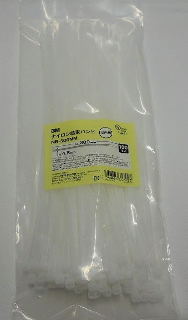 3M ナイロン結束バンド屋内用 幅4.8mmX長さ300mm 100本入 ミルキーホワイト NB-300MM