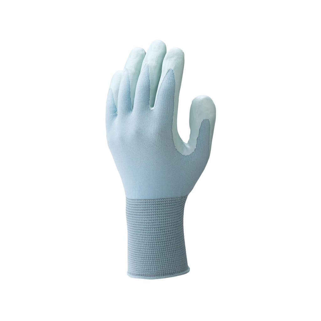 こぶしまでのコーティングで、水や土の侵入を防ぐナックルコート手袋です。ニトリルゴムをコーティングしているため、油に強く、摩耗強度にも優れています。手のひらには発泡ニトリルゴムの特殊スベリ止め層をコーティングしており、高いスベリ止め効果を発揮します。手の甲にはコーティングしていない部分があり、通気性を実現しています。繊維部分は編み目が細かく縫い合わせのない、独自の13ゲージ・シームレス編み手袋です。繊維部分は伸縮性があり、手首にフィットします。ニトリルゴム製ナックルコート手袋
