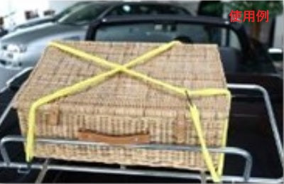 ゴム自身が輪の連続で、フックを自在に引っ掛ける事ができる。好きな長さで、荷物をしっかり固定できます。自転車、バイクの荷台への荷物の固定に。