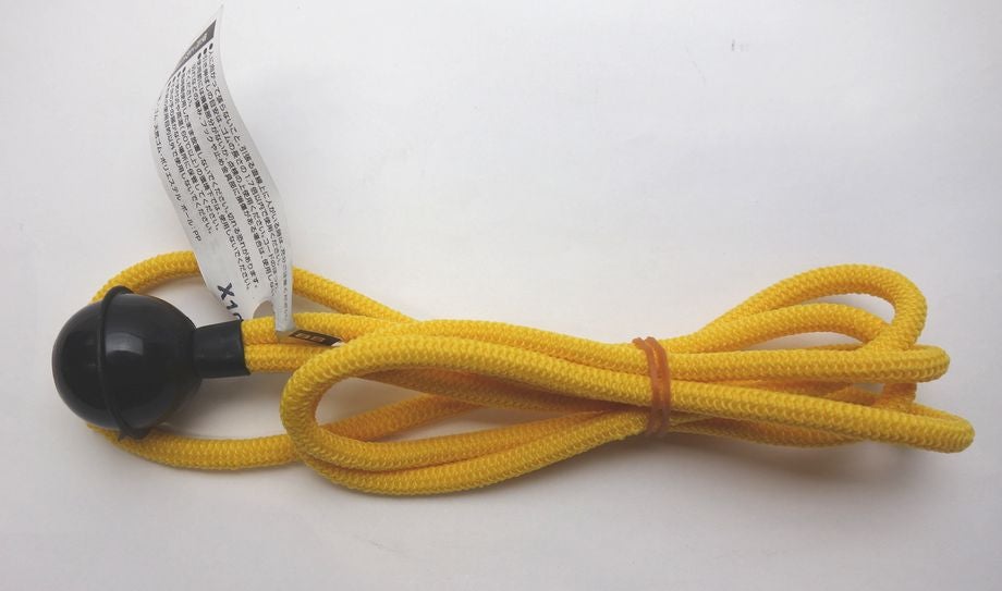 ボール型の留め金具付きの丸ゴムロープ。ロール状の物を束ねるのに非常に便利。