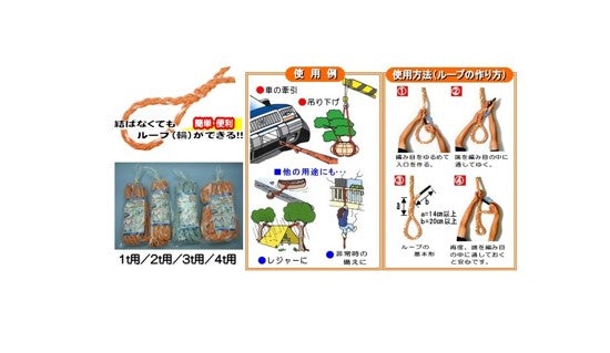 ショックを吸収するのに優れた構造。車の牽引用や吊り作業に便利。