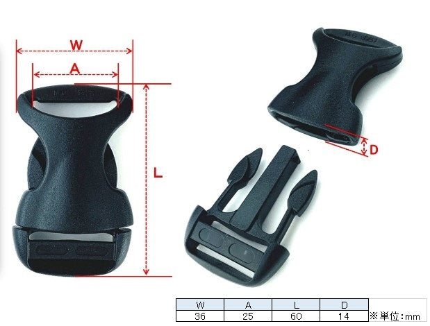 ユタカメイク 平ベルト金具 サイドリリースバックル 流線型 25MM幅用 JNA-125
