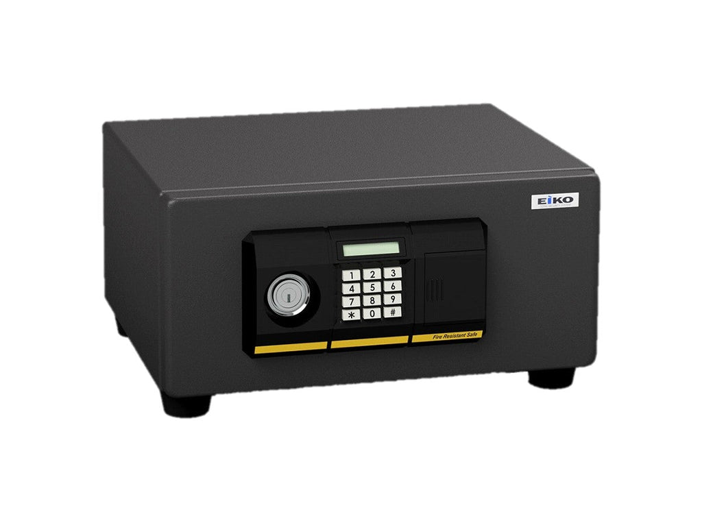 小型金庫の定番、エーコーのスタンダードシリーズ。テンキー式+シリンダー式のロックタイプです。30分耐火性能です。