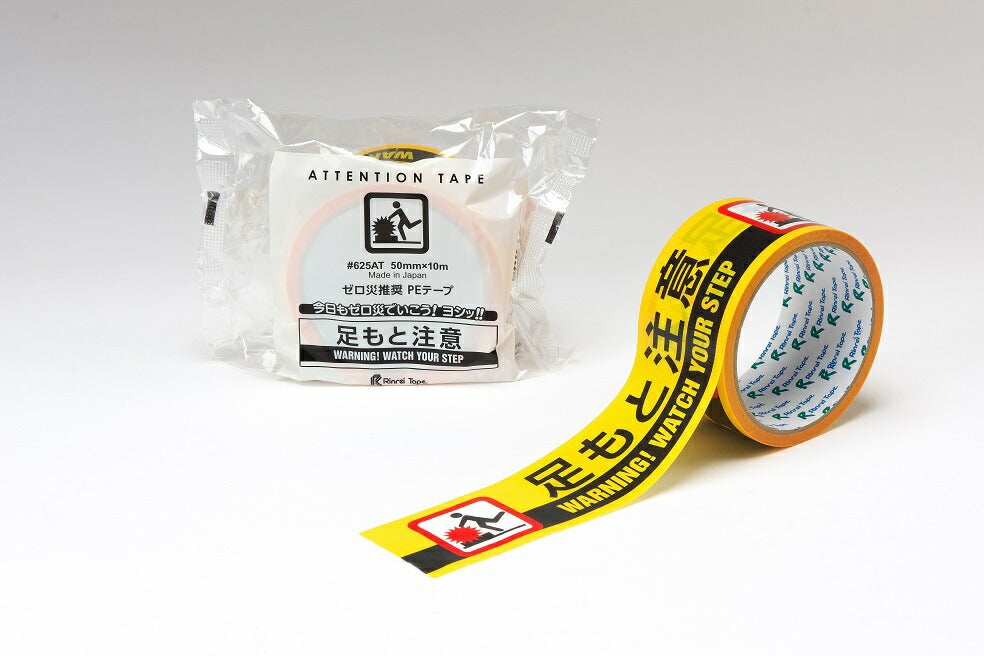 リンレイテープ 印刷PEテープ 50mmX10m 足もと注意 #625AT