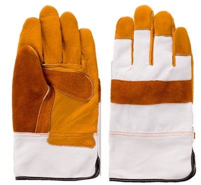 耐久性・耐熱性に優れハードワークに最適です。手のひら部分に内綿付きです。防水処理加工をした帆布を使用しています。素材:牛床皮、帆布、綿