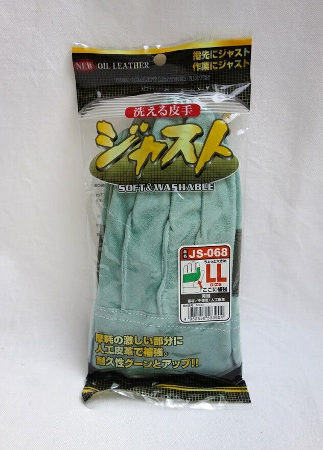 小指側の編み目がなく、縫目に手が当たりにくくなっています。指先ピッタリタイプです。摩耗の激しい部分を人口皮革で大きく補強してあり、耐久性が向上しています。洗濯が可能で、洗っても固くなりにくいです。土木、建築、ハードな仕事に使えます。