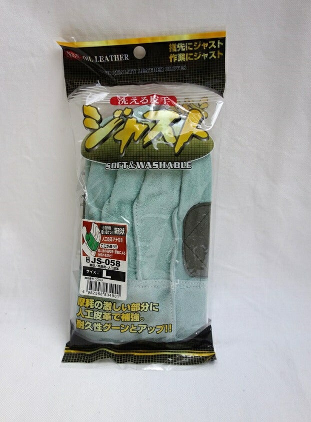 小指側の編み目がなく、縫目に手が当たりにくくなっています。指先ピッタリタイプです。摩耗の激しい部分を人口皮革で大きく補強してあり、耐久性が向上しています。洗濯が可能で、洗っても固くなりにくいです。土木、建築、ハードな仕事に使えます。