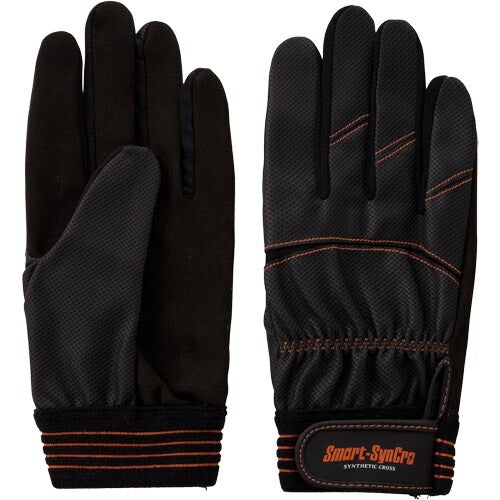 指関節部分が伸縮ジャージなので手にフィットします。摩擦に強く、しなやかさをもった高耐久人工皮革手袋。手の平の縫目を無くしたシームレス形状