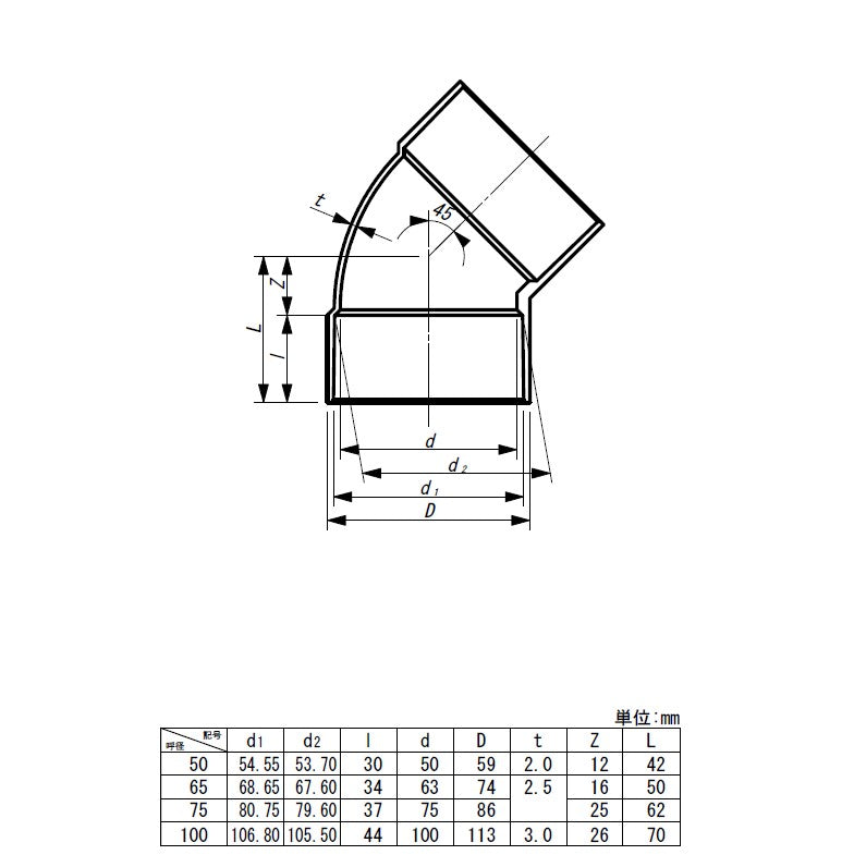 東栄管機 ライト管 45゜エルボ 呼び径75