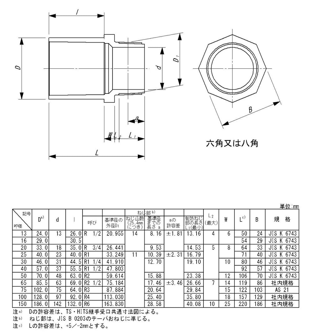給水・エア配管・ドレン排水等の継手に使用されます。