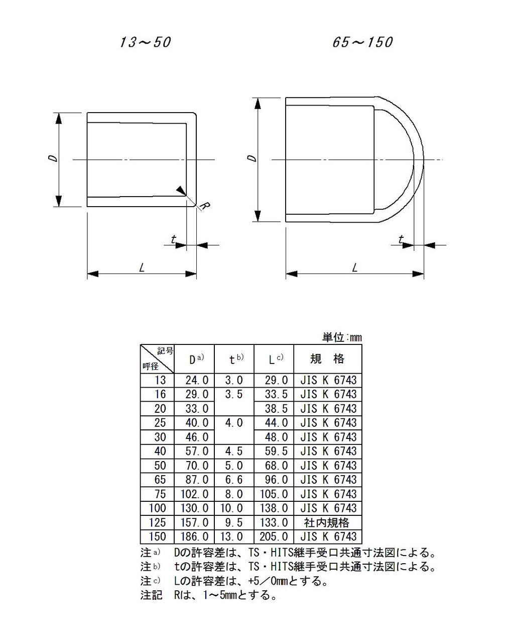 東栄管機 TS継手 キャップ 呼び径40