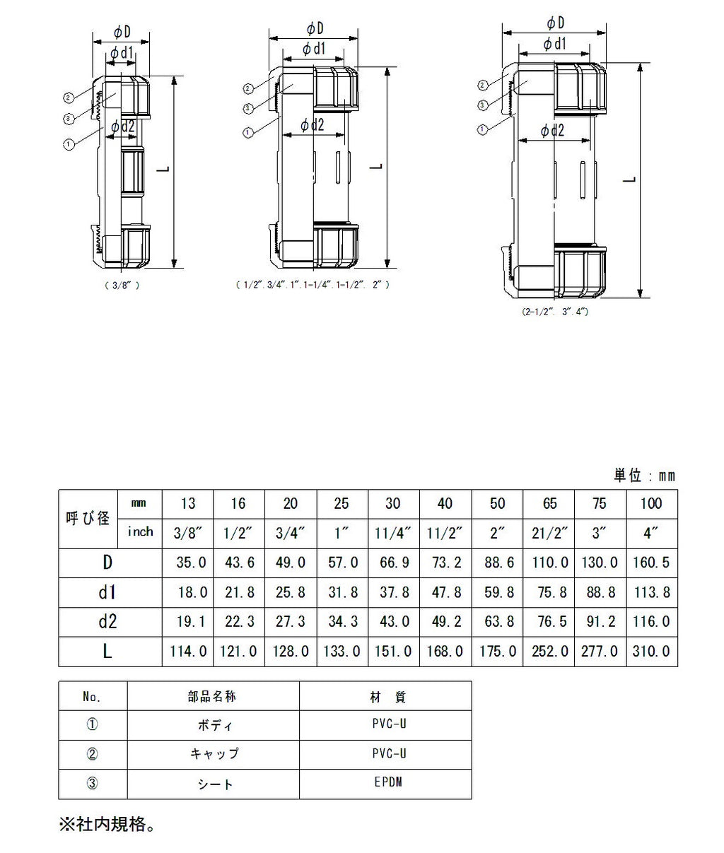 給水・エア配管・ドレン排水等の継手に使用されます。