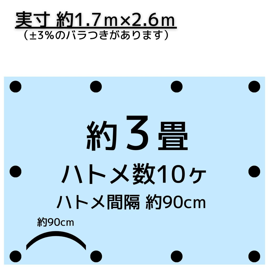 ■用途■土木建設業・農林水産業や養生、野積みカバーなどに。DIY作業やレジャー等の一般家庭用まで幅広く利用になれます。台風・水害等の災害備蓄用に。■ご注意■火のそばで使用しないで下さい。鋭利な突起物があたるとシートが破れる原因となります。素材:(本体)ポリエチレン、(ハトメ)ポリカーボネート実寸(m):約1.7X2.6(サイズに±3%のばらつきがあります)畳換算面積(畳):約3ハトメ数:10ハトメピッチ(cm):約90