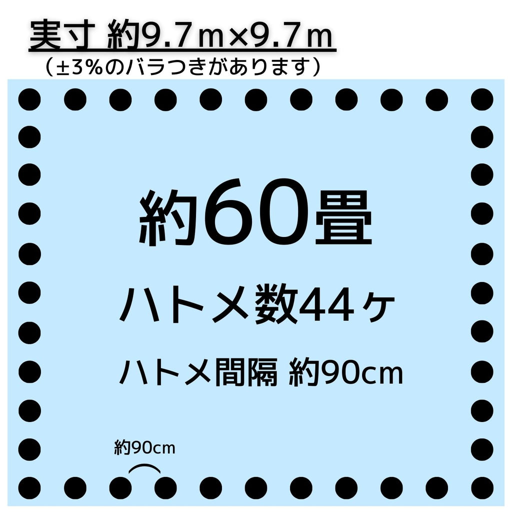 ■用途■土木建設業・農林水産業や養生、野積みカバーなどに。DIY作業やレジャー等の一般家庭用まで幅広く利用になれます。台風・水害等の災害備蓄用に。■ご注意■火のそばで使用しないで下さい。鋭利な突起物があたるとシートが破れる原因となります。素材:(本体)ポリエチレン、(ハトメ)ポリカーボネート実寸約9.7mX9.7m(±3%のばらつきがあります)畳換算面積(畳):約60ハトメ数:44ハトメピッチ(cm):約90