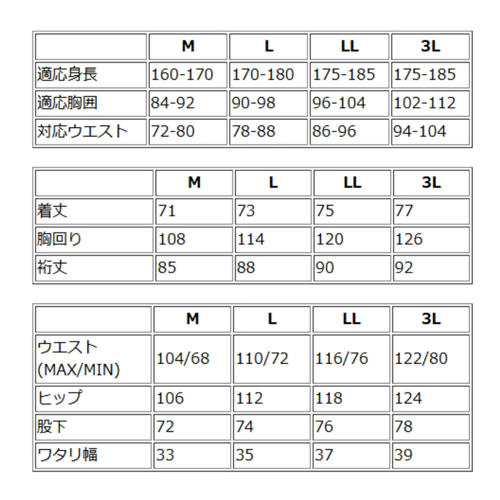 レインジャケット:通常のレインスーツよりもフィット感のある作りになっているため、ゆとりを持って着用されたい方には、普段よりもワンサイズ上をお勧めしております。