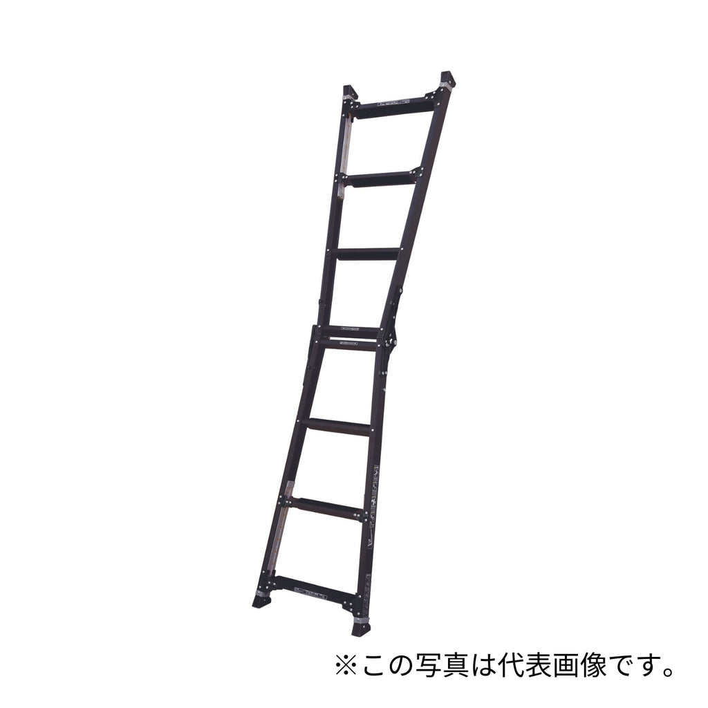 ●幅広踏ざんで軽量な伸縮脚付はしご兼用脚立●簡単!操作しやい伸縮操作レバー(6mmピッチ)●安心!昇降しやすい幅広踏ざん(60mm)●便利!交換しやすいボルト式支柱端具【仕様】●天板高さ(m):1.00~1.30●有効高さ〔使用最大高さ〕(m):2.13~2.77●はしごの接点(m):1.68~1.88●設置寸法 幅×奥行(mm):498~553×786~971●収納寸法 幅×奥行×高さ(mm):498×169×1081●質量(kg):6.5