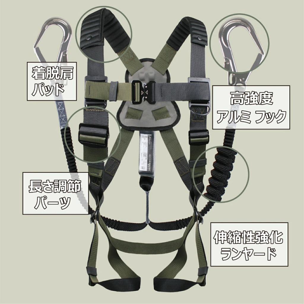 ●肩、胸、腰、太股でベルトの調節によるフィットアップ。