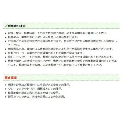 ●平坦でしっかりした地盤の養生用として敷いて下さい。
