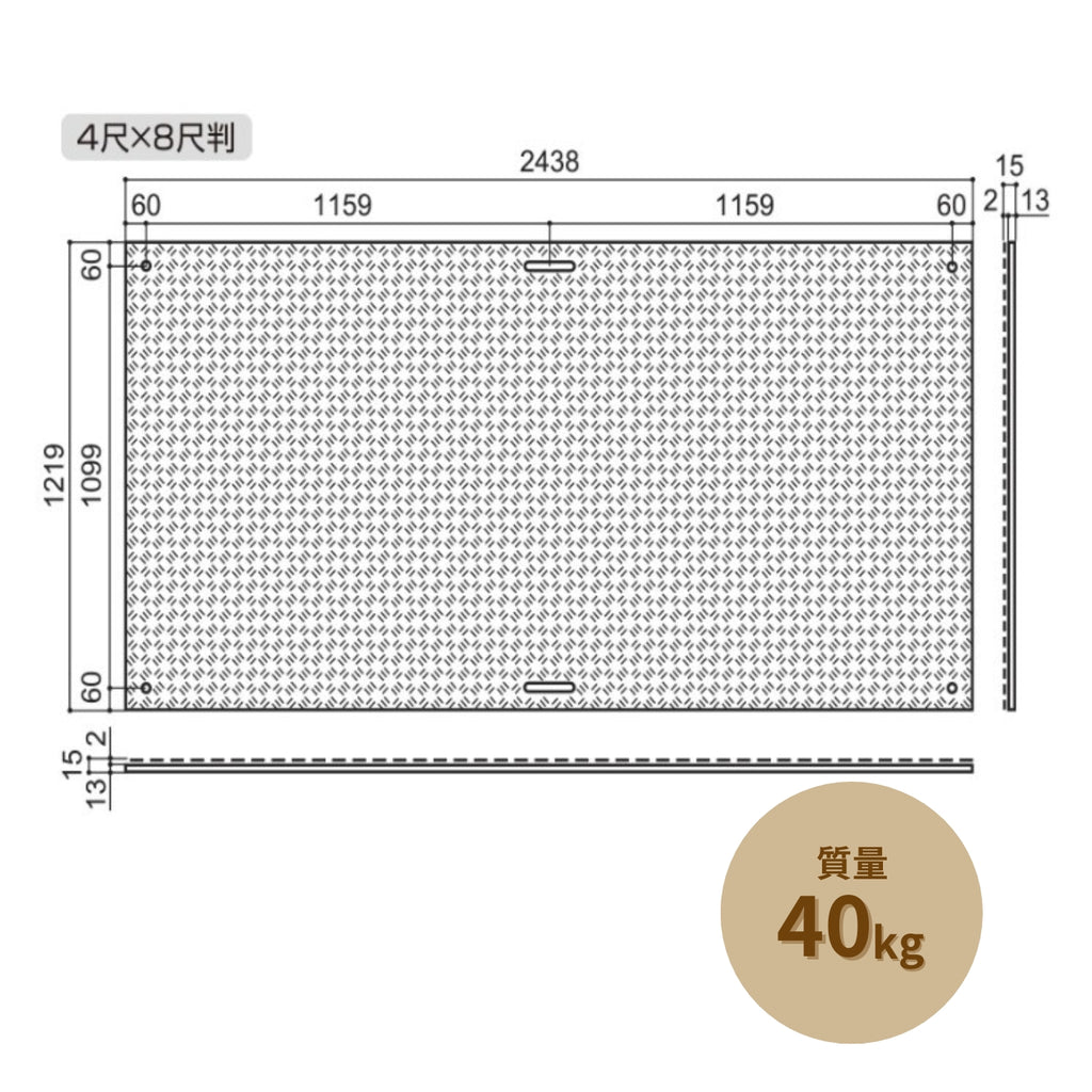 ●寸法:幅1219mm×長さ2438mm×厚み15(13+2)mm